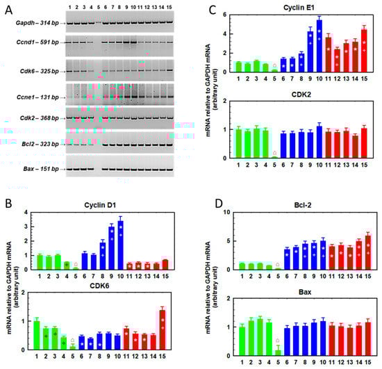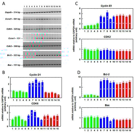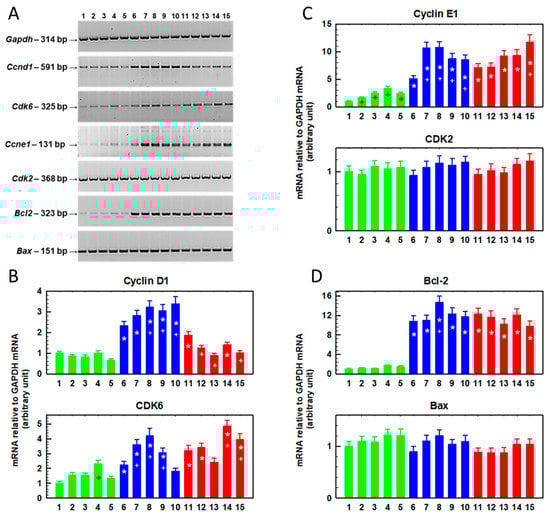 | Gene | Ccnd1 | Cdk6 | Ccne1 | Cdk2 | Bcl2 | Bax | ||||||||||||