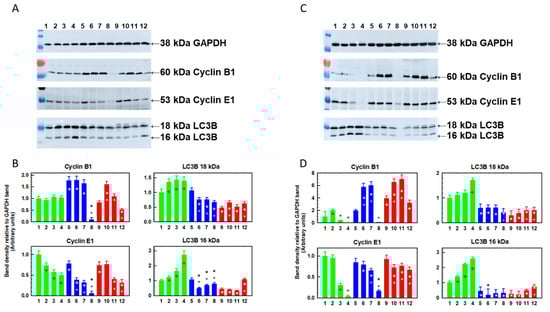 4.7. Western Blot Detection of Cyclin B1, E1 and LC3B Protein Fragments