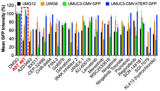 Agarwal, N.; Zhou, Q.; Arya, D.; Rinaldetti, S.; Duex, J.; LaBarbera, D.V.; Theodorescu, D. AST-487 Inhibits RET Kinase Driven TERT Expression in Bladder Cancer. Int. J. Mol. Sci. 2022, 23, 10819. https://doi.org/10.3390/ijms231810819