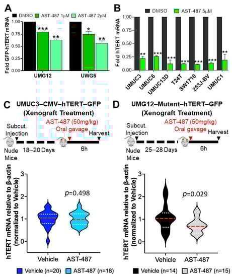 2.2. AST-487 Inhibits hTERT Expression In Vitro and In Vivo
