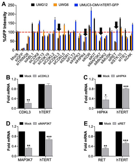 2.3. AST-487 Suppresses hTERT Expression by Inhibiting the RET Kinase Receptor