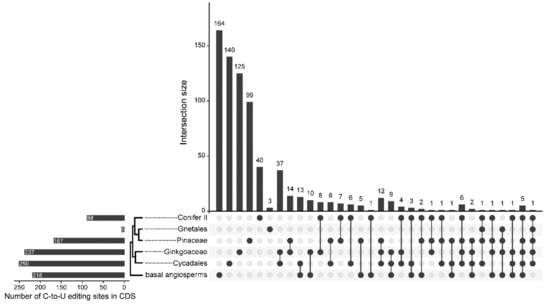 3.2. Chloroplast C-to-U RNA Editing Sites of Gymnosperms Share Many Common Characteristics with Other Land Plants but Also Have Some Unique Characteristics