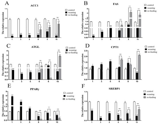 2.4. Effects of Weaning on the Expressions of Genes Related to Liver Lipid Metabolism