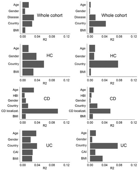 2.2. Fecal Microbiome Variation Explained by Covariates in the Metadata