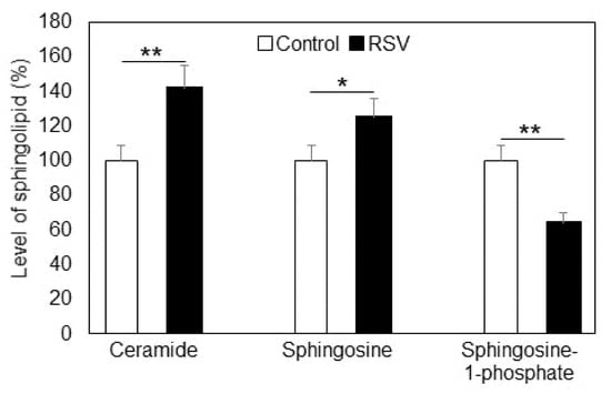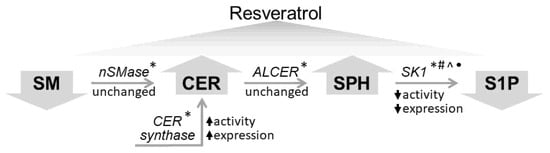 2.1. Effect of Resveratrol on Sphingolipid Level and Neutral Sphingomyelinase