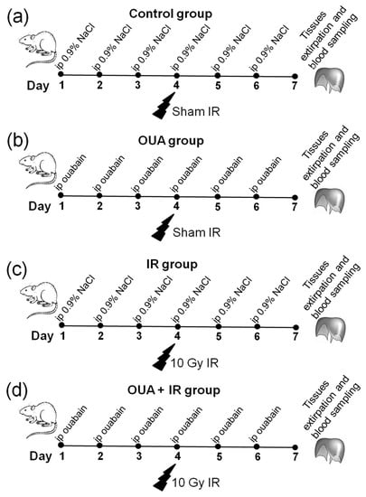 - Kaločayová, B.; Kovačičová, I.; Radošinská, J.; Tóthová, L.; Jagmaševič-Mézešová, L.; Fülöp, M.; Slezák, J.; Babál, P.; Janega, P.; Vrbjar, N. Alteration of renal Na,K-ATPase in rats following the mediastinal γ-irradiation. Physiol. Rep. 2019, 7, e13969. [Google Scholar] [CrossRef] [PubMed]