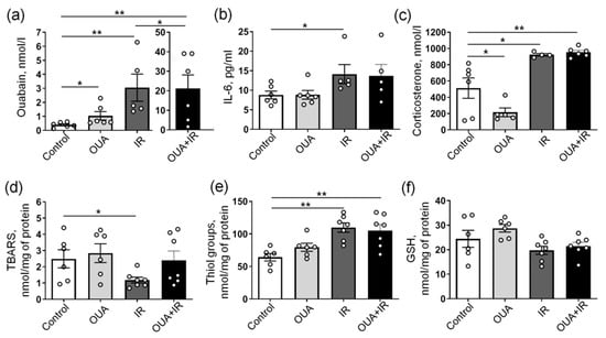 2.2. IR Elevates the Serum Level of Ouabain, Activates Inflammation and Antioxidant Responses