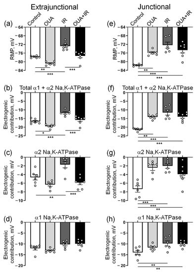 2.3. IR Decreases Electrogenic Contribution of the α2 Na,K-ATPase and Depolarizes Sarcolemma