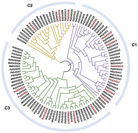 2.5. Evolutionary Analysis of GASA Family Genes in P. mume and Other Species