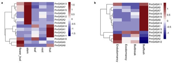 2.8. Expression Patterns of PmGASA Genes during Floral Bud Development