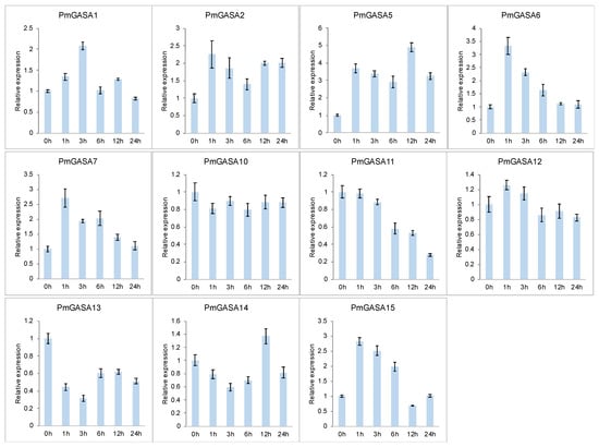 4.6. Cis-Acting Element Analysis of PmGASA Genes