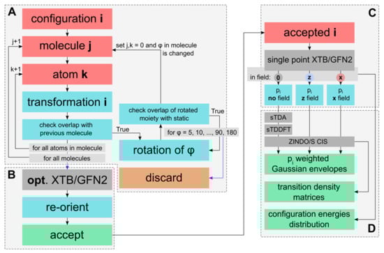 - Tirri, B.; Mazzone, G.; Ottochian, A.; Gomar, J.; Raucci, U.; Adamo, C.; Ciofini, I. A combined Monte Carlo/DFT approach to simulate UV-vis spectra of molecules and aggregates: Merocyanine dyes as a case study. J. Comput. Chem. 2021, 42, 1054–1063. [Google Scholar] [CrossRef] [PubMed]