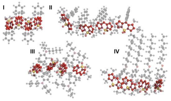 - Yu, G.; Wilson, M.R. Molecular simulation studies of self-assembly for a chromonic perylene dye: All-atom studies and new approaches to coarse-graining. J. Mol. Liq. 2022, 345, 118210. [Google Scholar] [CrossRef]