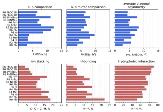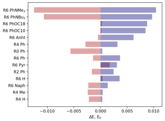 - Donating oxygen in μ-position and long aliphatic: R6 PhOC10 and R6 PhOC18.