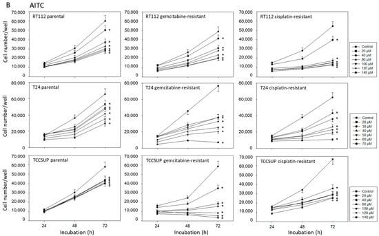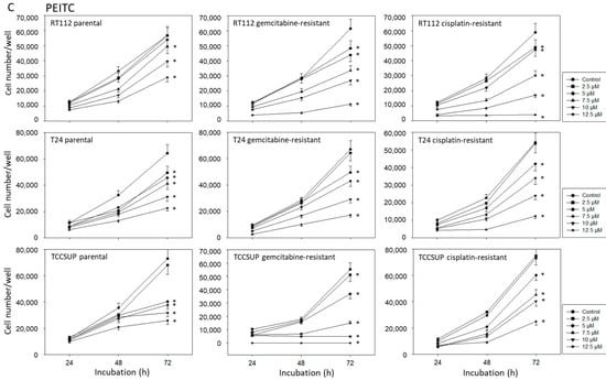 Chicago/Turabian StyleRutz, Jochen, Sebastian Maxeiner, Timothy Grein, Marlon Sonnenburg, Salma El Khadir, Nino Makhatelashvili, Johanna Mann, Hui Xie, Jindrich Cinatl, Anita Thomas, and et al. 2022. "Allyl-, Butyl- and Phenylethyl-Isothiocyanate Modulate Akt–mTOR and Cyclin–CDK Signaling in Gemcitabine- and Cisplatin-Resistant Bladder Cancer Cell Lines" International Journal of Molecular Sciences 23, no. 19: 10996. https://doi.org/10.3390/ijms231910996