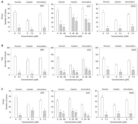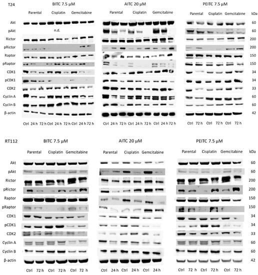 Rutz J, Maxeiner S, Grein T, Sonnenburg M, Khadir SE, Makhatelashvili N, Mann J, Xie H, Cinatl J, Thomas A, et al. Allyl-, Butyl- and Phenylethyl-Isothiocyanate Modulate Akt–mTOR and Cyclin–CDK Signaling in Gemcitabine- and Cisplatin-Resistant Bladder Cancer Cell Lines. International Journal of Molecular Sciences. 2022; 23(19):10996. https://doi.org/10.3390/ijms231910996