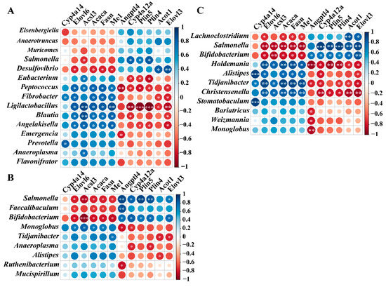 2.4. Correlation of Cigarette-Smoke-Exposure-Induced Gut Microbiota Dysbiosis with DEGs in the Liver