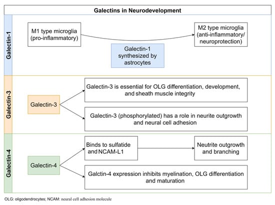 - Thomas, L.; Pasquini, L.A. Galectin-3-mediated glial crosstalk drives oligodendrocyte differentiation and (Re)myelination. Front. Cell. Neurosci. 2018, 12, 297. [Google Scholar] [CrossRef]