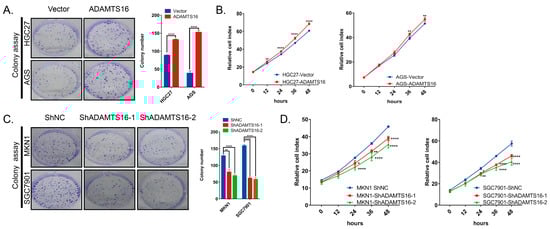 2.2. Ectopic ADAMTS16 Expression Stimulates GC Cell Growth In Vitro and In Vivo