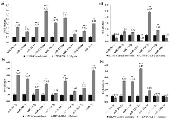 2.5. PD-L1 Regulates Cellular and Exosomal miRNAs Involved in Tumor Migration, Invasion, and Metastasis
