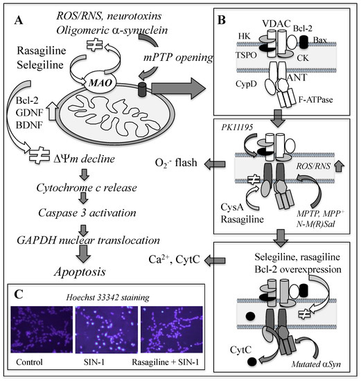 5.2. Rasagiline and Selegiline Directly Inhibit Mitochondrial Apoptosis Cascade