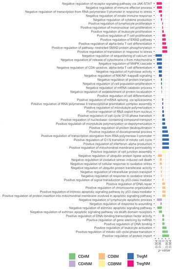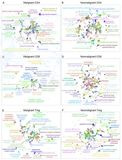 2.2. GO Annotations and Biological Pathways in T-Cells from Malignant and Nonmalignant Cancer