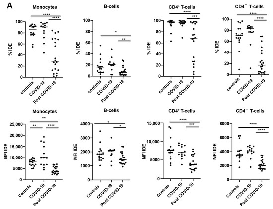 2.3. IDE Surface Expression Is Increased on Monocytes from COVID-19 Patients and Decreased in All Studied Subsets following COVID-19 Recovery