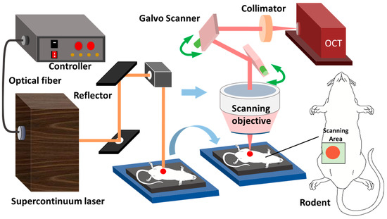 Optical coherence tomography (OCT) is a noninvasive imaging method that can obtain high-resolution three-dimensional volume images of biological tissues [1]. The principle of OCT is similar to ultrasonic imaging, but the difference is that it uses light rather than sound waves. Image acquisition is based on light with a short coherence length, and the distance of the partial reflection structure in biological tissue is measured by an interferometer. OCT is a rapidly developing imaging technology that is used in various biological and medical disciplines. Especially in ophthalmology, OCT has been used as an imaging method for diagnosing retinal diseases since the early 1990s [2]. Later, OCT was introduced into dermatology as a noninvasive option for biopsy and histology. In addition to routine application in the clinic, OCT can also be used for the study of animal models in vivo rather than human bodies.