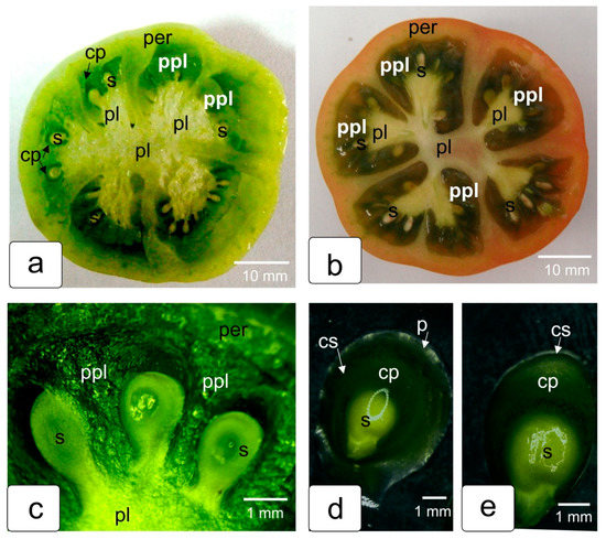 Figure 4i). The obtained data clearly demonstrates the fact that the development and maturation of the seed in the tomato fruit occurs inside the capsule in complete isolation from the surrounding tissues.