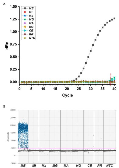 2.3. Primers and Probe Specificity Tests Analyzed by qPCR and ddPCR