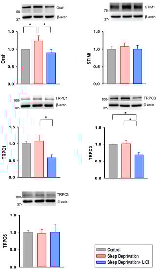 Emerging evidence suggests that TRPCs are another class of ion channels that regulate store-operated Ca2+ entry and cardiac fibrogenesis [,]. In the TRPC family, the TRPC1, TRPC3, and TRPC6 channels are expressed in cardiac fibroblasts and play an essential role in the formation of cardiac fibrosis []. In particular, the present study found that in addition to the reduction of Orai1 expression, lithium treatment downregulated the TRPC1 and TRPC3 levels in REM sleep-deprived rat hearts. This finding is similar to those of other studies, suggesting that lithium treatment may decrease the expressions of the TRPC1 and TRPC3 genes in neurons or lymphoblasts of patients with bipolar disorder [,,]. Given the evidence that TRPC channels may participate in store-operated Ca2+ entry dependent on Orai1 [,], future research needs to elucidate the specific roles of Orai1 and TRPC channels in the antifibrotic action of lithium in REM sleep-deprived hearts.