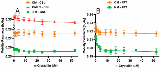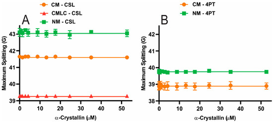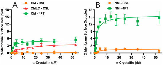 - Cobb, B.A.; Petrash, J.M. Characterization of Alpha-Crystallin-Plasma Membrane Binding. J. Biol. Chem. 2000, 275, 6664–6672. [Google Scholar] [CrossRef] [PubMed]