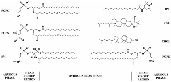 - Raguz, M.; Mainali, L.; Widomska, J.; Subczynski, W.K. Using Spin-Label Electron Paramagnetic Resonance (EPR) to Discriminate and Characterize the Cholesterol Bilayer Domain. Chem. Phys. Lipids 2011, 164, 819–829. [Google Scholar] [CrossRef]
