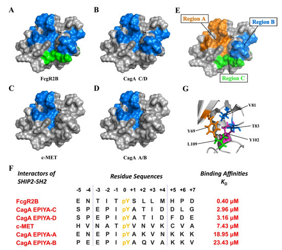 2.1. SHIP2-SH2 Binds with CagA EPIYA-C and EPIYA-D in a Similar Mode