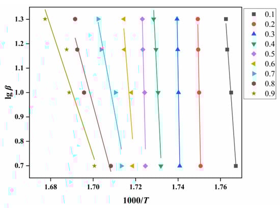 | Samples | β/K·min−1 | Tp (°C) | EK (kJ/mol) | lgAK (s−1) |