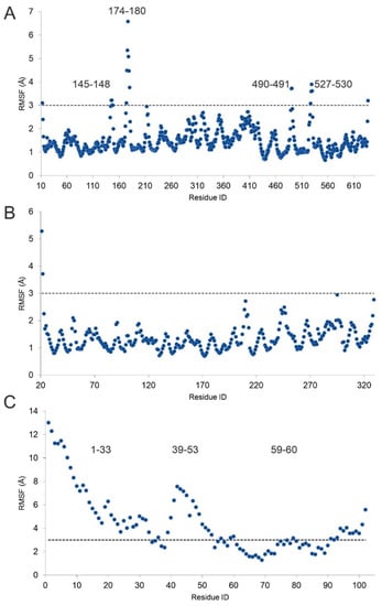 - Waterhouse, A.; Bertoni, M.; Bienert, S.; Studer, G.; Tauriello, G.; Gumienny, R.; Heer, F.T.; de Beer, T.A.P.; Rempfer, C.; Bordoli, L.; et al. SWISS-MODEL: Homology modelling of protein structures and complexes. Nucleic Acids Res. 2018, 46, W296–W303. [Google Scholar] [CrossRef] [PubMed]