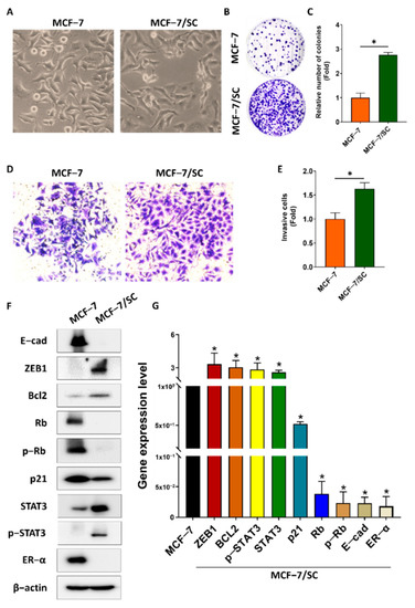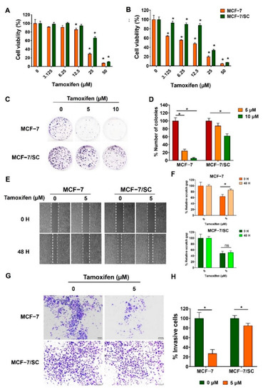 2.2. Tamoxifen Resistance of MCF−7/SC Cells Compared with the Parental MCF−7 Cells