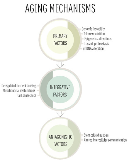 - López-Otín, C.; Blasco, M.A.; Partridge, L.; Serrano, M.; Kroemer, G. The hallmarks of aging. Cell 2013, 153, 1194–1217. [Google Scholar] [CrossRef]