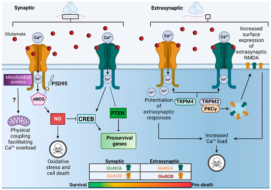 - Hardingham, G.E.; Bading, H. Synaptic versus extrasynaptic NMDA receptor signalling: Implications for neurodegenerative disorders. Nat. Rev. Neurosci. 2010, 11, 682–696. [Google Scholar] [CrossRef]