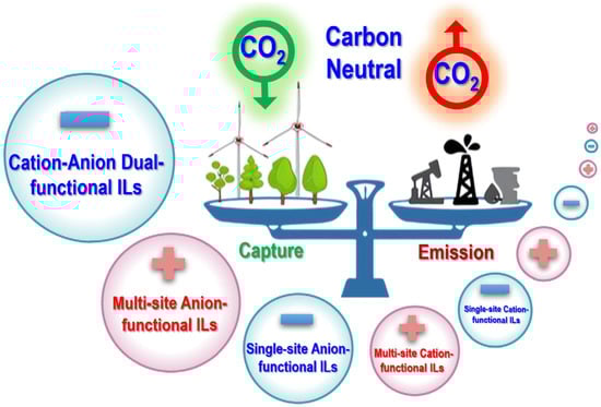 In this critical review, we mainly focus on the development of functionalized ILs for CO2 capture in the past 10 years (2012~2022). The main contents include three parts, cation-functionalized ILs, anion-functionalized ILs, and cation-anion dual-functionalized ILs for CO2 capture (Figure 1). Besides, classification, structures, and synthesis of functionalized ILs are also summarized. Finally, future directions, concerns, and prospects for functionalized ILs in CCUS are discussed.