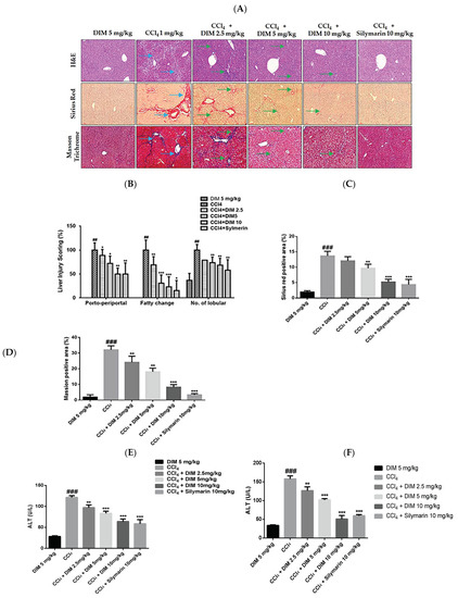 - CCl4 + Silymarin 10 mg/kg group: Mice were i.p. injected with CCl4 for the first 4 weeks, followed by subcutaneous administration of DIM at 10 mg/kg for the last 4 weeks together with CCl4.