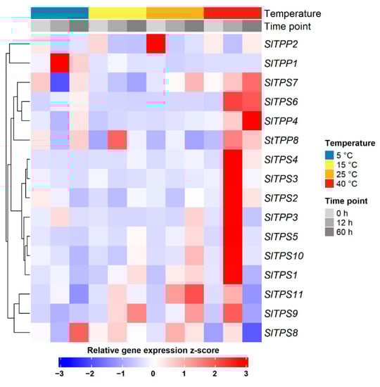 Temperature-dependent changes in expression of tomato TPS and TPP genes. The experiment was carried out three times with similar results.