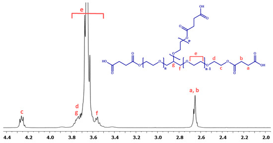 1H NMR (300 MHz, CDCl3, δ): 4.40–4.16 (m, -C(O)OCH2CH2O-), 3.96–3.36 (m, -CH2O- in repeating unit), 2,65 (s, -CH2C(O)OH I, -CH2C(O)O-).