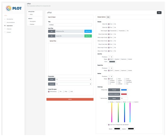 The core engine of cPlot is based on Python, and the web-based user interface was implemented with Bootstrap, JavaScript, PHP, and matplotlib []. The web-based interface enables easy input and submission of tasks, as well as result viewing. As an example, Figure 6 shows the web-based interface that allows the user to perform contig plotting. The user can easily submit and manage contig-plotting tasks in cPlot, without having to build a separate environment.