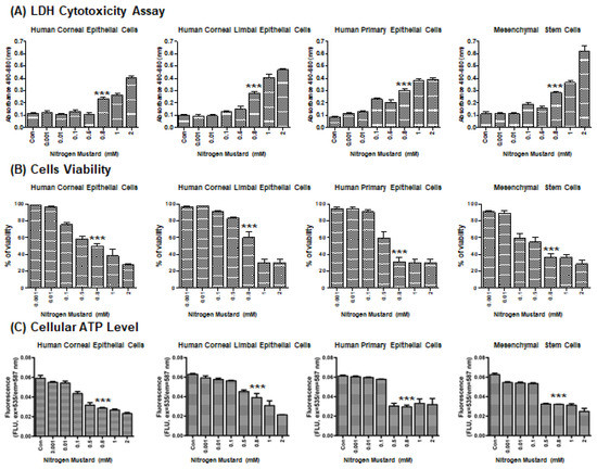 2.1. Effects of Nitrogen Mustard on Viability In Vitro