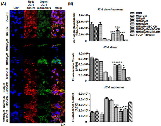2.3. MSC-CM Attenuates NM-Induced Change in Mitochondrial Membrane Potential