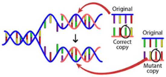 Genes coordinate with each other by having specific sequences within a cell [5]. Mutation is caused by a change in the base sequence of a DNA. The main cause of this change can also be via insertion, deletion, or replication of gene bases, which causes DNA damage. Different factors influence DNA damage. These factors consist of metabolic influences or environmental factors such as radiation that led to tens of instances of damage per cell, every day [6]. The damage in the DNA molecule alters or eliminates the cell’s capability to transcribe the gene. DNA repair is the procedure in which a cell identifies and corrects the damage that happens in DNA [7]. This technique is constantly energetic as it responds to damage in the DNA structure. When the regular repair process fails, or cellular apoptosis does not occur, then DNA damage may additionally now not be repairable. This irreparable injury leads to malignant tumors, or cancer [8,9].