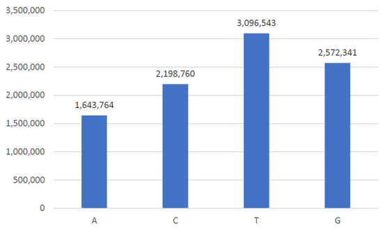 The existence of bases in gene sequences related to breast cancer is explained with the help of the frequency histogram in Figure 9. A total of 99 genes are involved in the progression of breast cancer. Each gene is expressed in a series of bases consisting of nucleotides. Therefore, the dataset contains many nucleotides as expressed with the help of a technique present in Natural Language Processing (NLP) known as a word cloud.