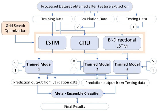 Proposed methodology of Ensemble Learning Model of LSTM, GRU, and bi-directional LSTM.