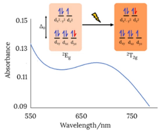 View of the d-d transition in the UV-Vis spectrum of the dimeric copper(II) complex (in ethanol).